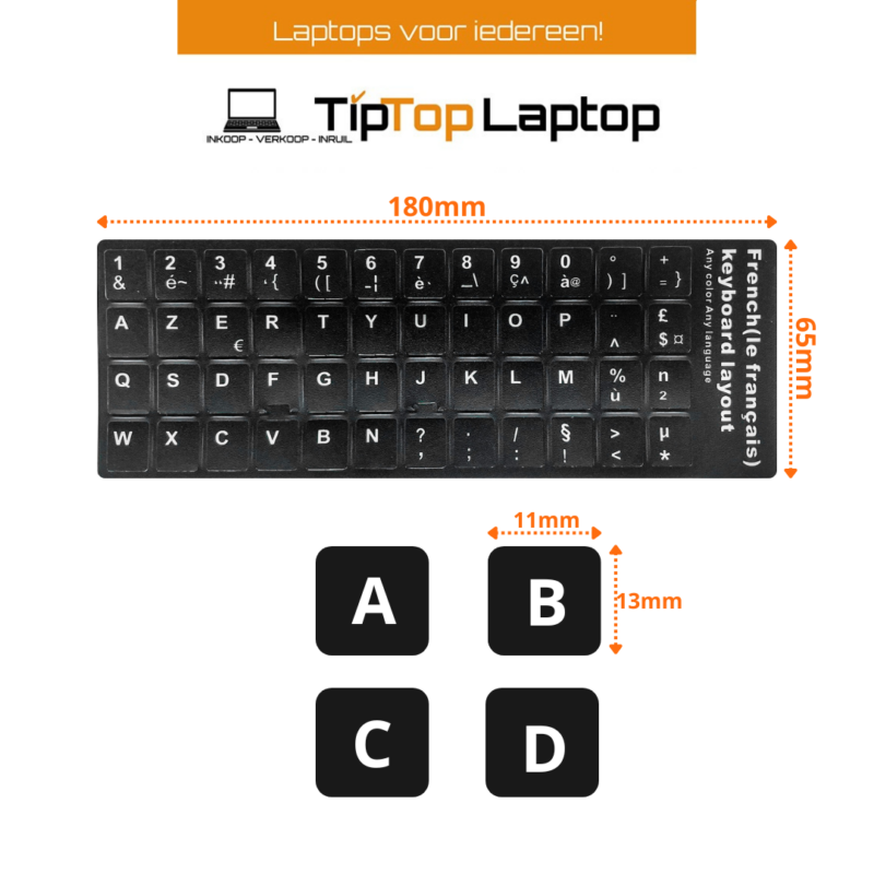 Met deze set stickers kun je eenvoudig een toetsenbord met een vervaagde bedrukking vernieuwen of ombouwen naar een andere taalindeling. Het stickervel bevat stickers voor een standaard Frans (AZERTY) toetsenbord. Plak de stickers simpelweg over de toetsen van je bestaande toetsenbord en je hebt snel een toetsenbord in de gewenste indeling!